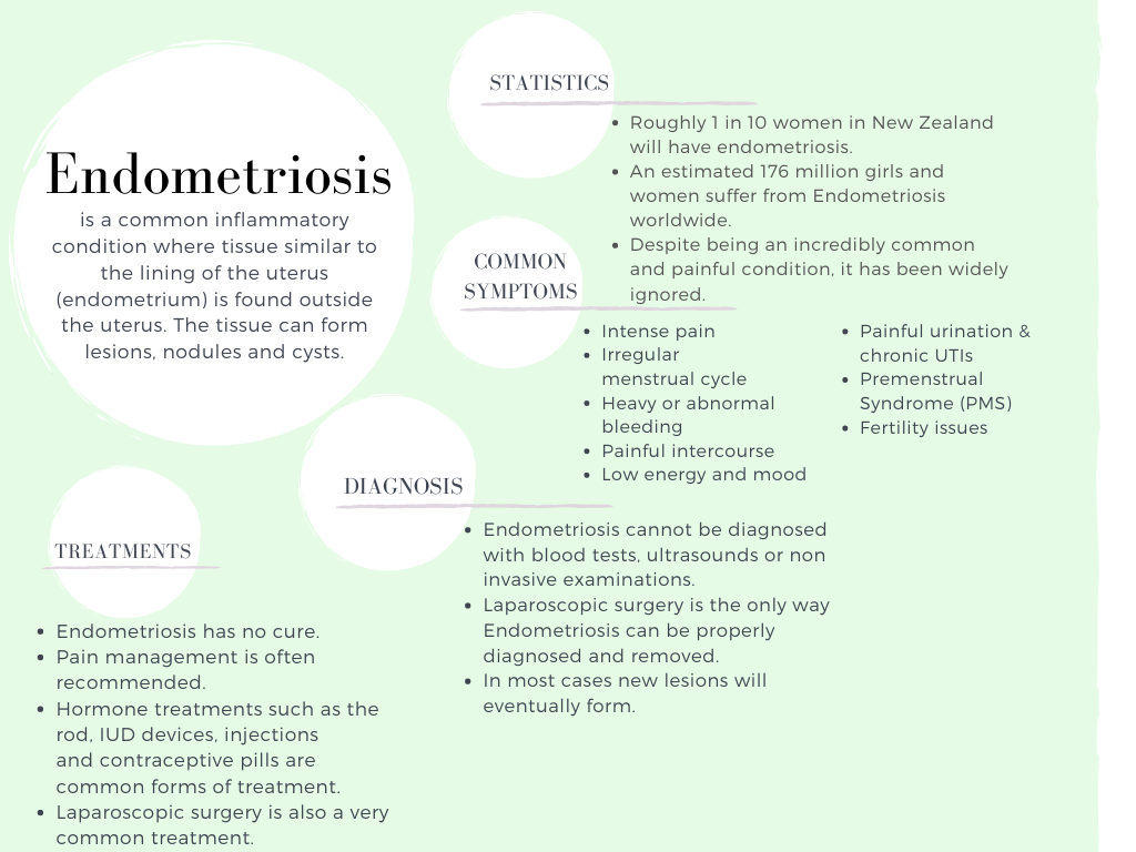 Overcoming Endo – Real Stories of Endometriosis. https://oldstory.waikatoindependent.co.nz/overcoming-endo-real-stories-of-endometriosis/ Tue, 19 Nov 2019 12:00:42 +0000 http://story.waikatoindependent.co.nz/?p=5726 Endometriosis is a chronic disease affecting hundreds of thousands of women globally. Endometriosis is often referred to as ‘endo.’ Recently the spotlight has been on women’s reproductive issues especially common conditions such as endometriosis and PCOS  (PolyCystic Ovary Syndrome). Endometriosis is a lifelong disease with an incredibly high chance of returning even when surgically removed. Endo can also develop into PCOS which is intensely painful by itself. Despite the frequency of endometriosis occurring in women the disease is still relatively unexplored, treatments are frustratingly limited and many women are not taken seriously when telling their doctors about their pain.